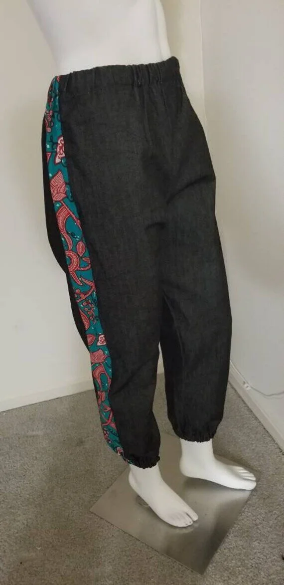 African Print/Denim joggers, African Pants, Ankara joggers, African clothing.